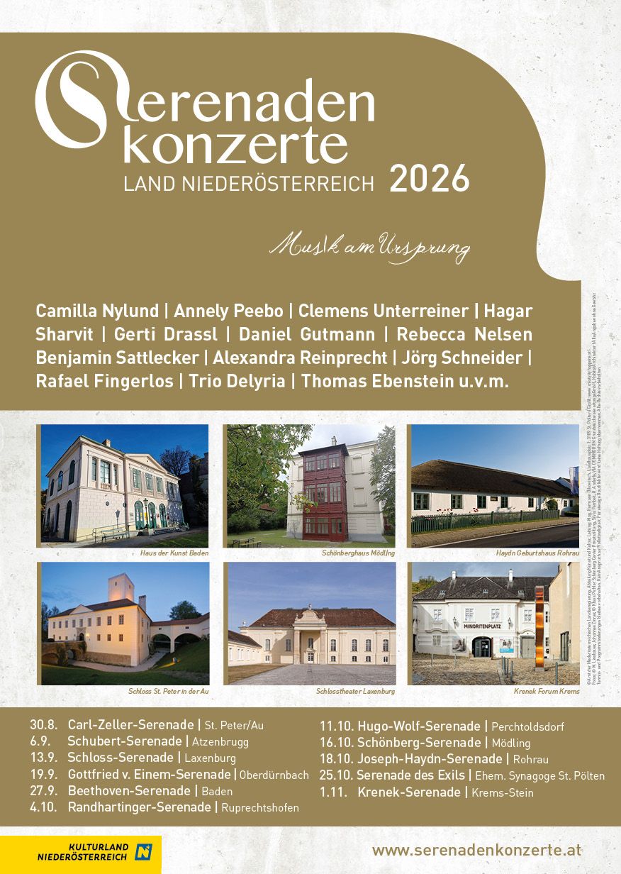 Die „Serenadenkonzerte des Landes Niederösterreich“ stellen seit vielen Jahrzehnten ein außergewöhnliches Kulturprojekt dar, das international seinesgleichen sucht. Musikergedenkstätten in einem Bundesland wie Niederösterreich, mit seinem derart reichen musikhistorischen Erbe, durch Konzertveranstaltungen mit Leben zu erfüllen und gemeinsam zu präsentieren, stellt eine Aufgabe dar, die mir seit bereits über zehn Jahren, ein großen Herzensanliegen ist.